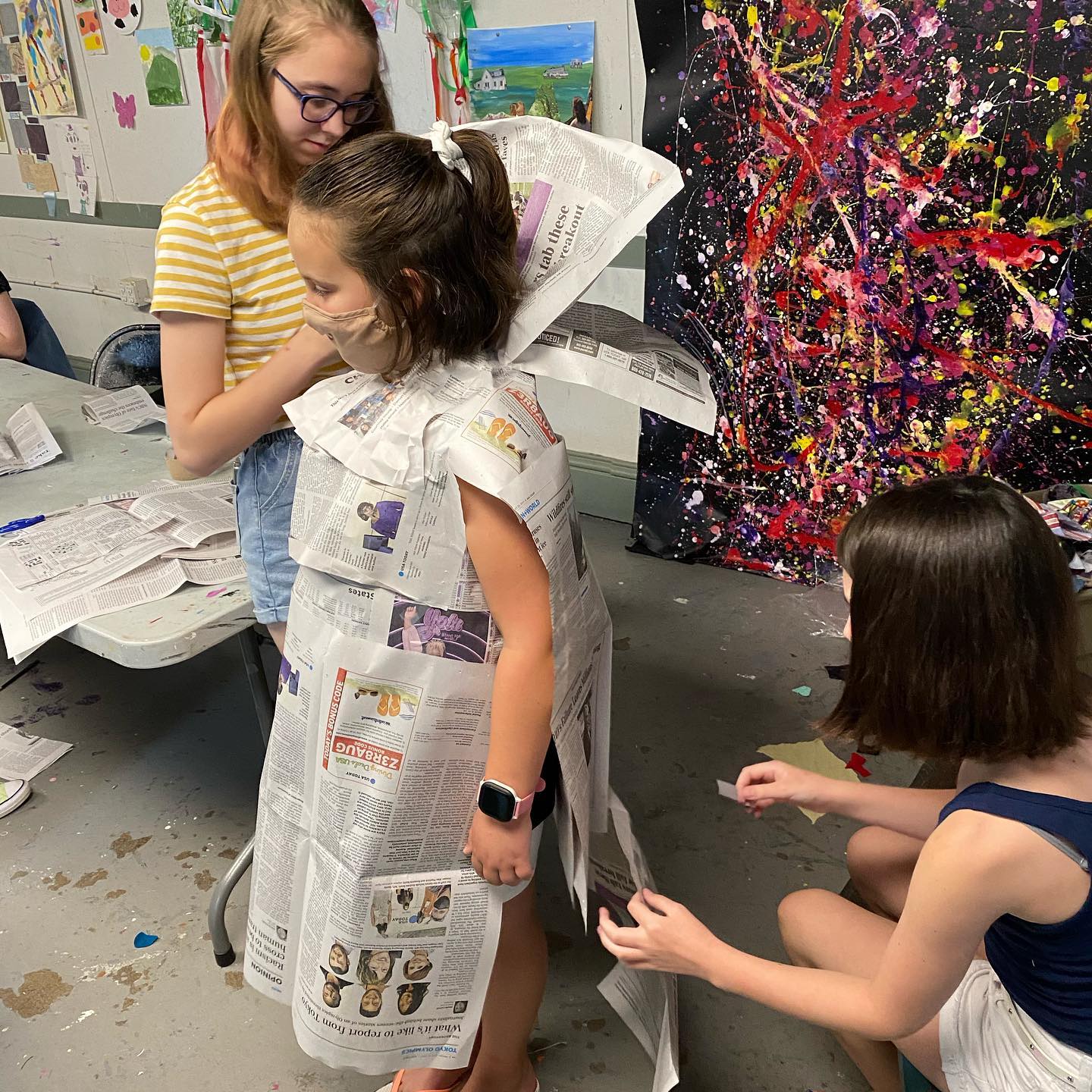 DESIGNERS 8-12: Design your own mood and sketch board, fashion magazine, fashion label, fashion paper dolls, and design and dress a Barbie. Then design your own newspaper dress for a fashion show with friends and family invited!